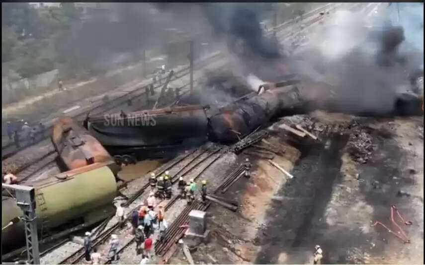 சென்னையில் இருந்து ஜோலார்பேட்டை நோக்கி புறப்பட்ட சரக்கு ரயில் , திருவள்ளூர் ஏகாட்டூர் இடையே இன்று அதிகாலை 5:30 மணியளவில் ரயில் தடம் புரண்ட விபத்தில் 18 டேங்கர்களும் தீப்பிடித்து எரிந்து 12 லட்சத்து 60 ஆயிரம் லீட்டர் கொள்ளளவு கொண்ட 12 கோடி மதிப்பிலான டீசல்கள் எரிந்து முழுமையாக நாசமானது,