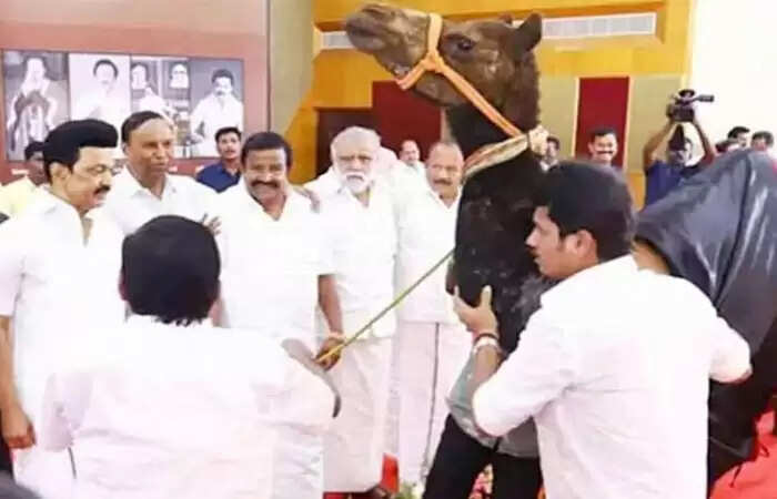 அந்த சமயத்தில், பாலைவனங்களில் வாழும் ஒட்டகம் முதல்வர் ஸ்டாலினுக்கு பரிசாக வழங்கப்பட்டது . இந்த ஒட்டகம் திருவள்ளூர் மாவட்டத்தில் உள்ள முதல்வரின் உறவினர் தோட்டத்திற்கு அழைத்துச் செல்லப்பட்டது.