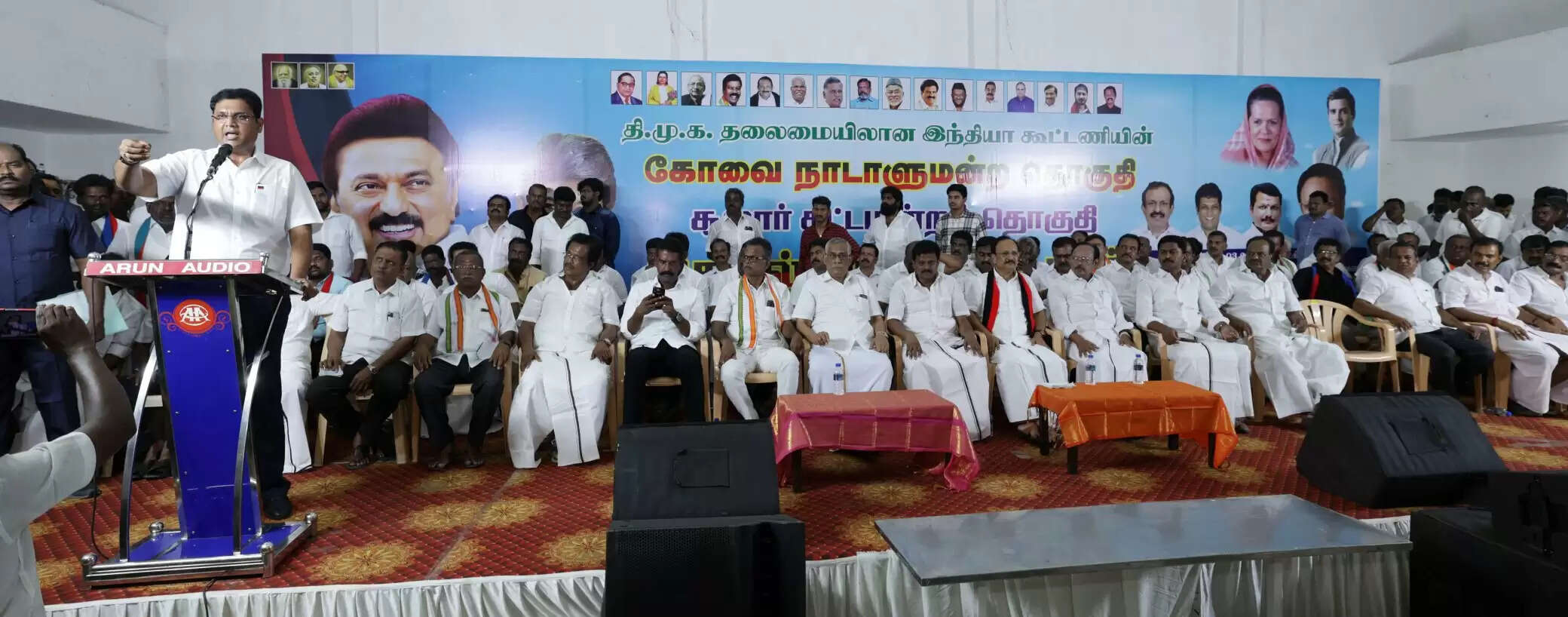 கோவை: சூலூரில் உள்ள தனியார் மண்டபத்தில் திமுக கூட்டணி கட்சிகளின் செயல் வீரர்கள் கூட்டம் இன்று நடைபெற்றது.