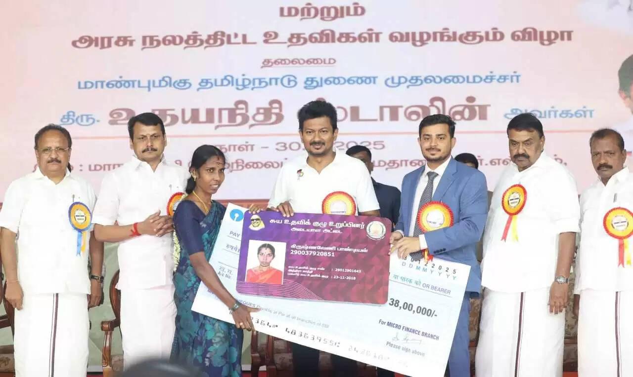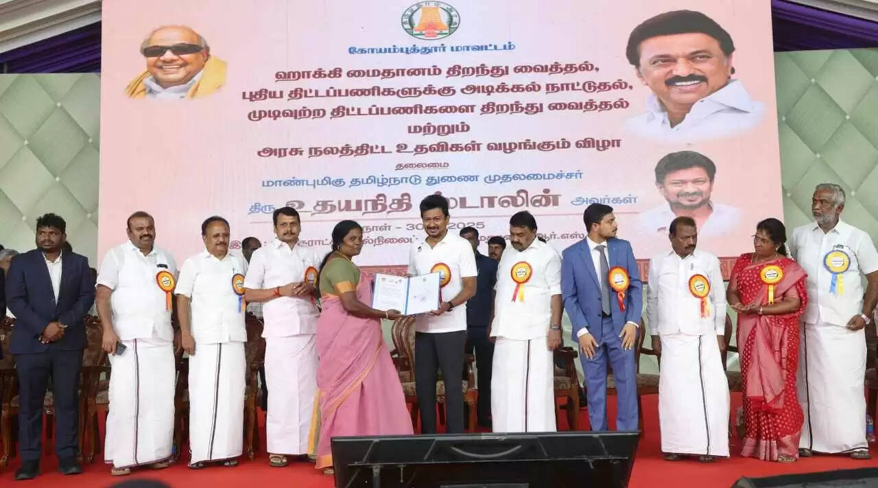 கோவையில் நடைபெற்ற மாபெரும் அரசு விழாவில், சுமார் 11 ஆயிரம் பயனாளிகளுக்கு ரூ.137 கோடி மதிப்பிலான பல்வேறு நலத்திட்ட உதவிகளை, துணை முதலமைச்சர் உதயநிதி ஸ்டாலின் வழங்கி வாழ்த்திப் பேசினார்.அப்போது அவர், 1,500 மகளிர் சுய உதவிக்குழு சகோதரிகளுக்கு வங்கிக் கடன் இணைப்புகள் - 1500 பொதுமக்களுக்கு வீட்டுமனை பட்டாக்கள் - 211 மாற்றுத் திறனாளி சகோதர சகோதரிகளுக்கு இணைப்புச் சக்கரம் பொருத்தப்பட்டுள்ள ஸ்கூட்டர்கள் வாகனம் மற்றும் செவித்திறன் கருவிகள் - கலைஞர் கனவு இல்லம் திட்டத்தின் கீழ், ஆணைகள் உட்பட பல்வேறு நலத்திட்ட உதவிகளை வழங்கி வாழ்த்தினார்.இந்த நிகழ்வின் போது, ரூ.163 கோடி மதிப்பில் பணி நிறைவுபெற்ற திட்டங்களை திறந்து வைத்து, ரூ.32 கோடி மதிப்பிலான புதிய பணிகளுக்கு அடிக்கல் நாட்டினார்.