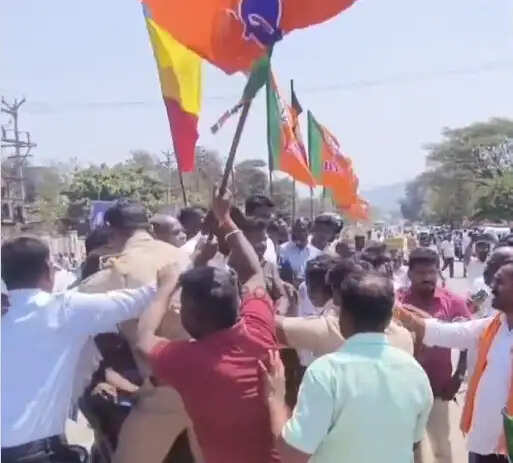 திருமா குறித்து அவதூறு பேசியதாக பாஜக நடத்திய ஆர்ப்பாட்டத்தில் கற்கள், காலணிகளை தூக்கி வீசி விசிகவினர் ரகளை