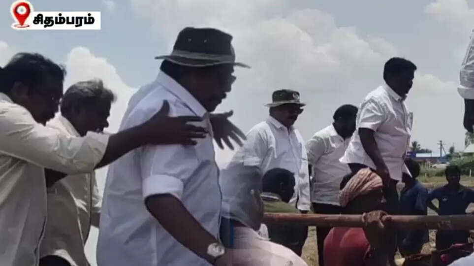 சிதம்பரத்தில் விசிக பொதுக்கூட்ட மேடை அமைக்கும் பணியை பார்வையிட சென்றபோது, தற்காலிக படிக்கட்டு சரிந்து விழுந்துள்ளது. இதில் விடுதலைச் சிறுத்தைகள் கட்சி எம்.எல்.ஏ-க்கள் இருவர், கீழே விழுந்ததால் பரபரப்பு; திருப்போரூர் எம்.எல்.ஏ எஸ்.எஸ்.பாலாஜிக்கு லேசான காயம்#VCK | #Chidambaram pic.twitter.com/iohPYY4xCK