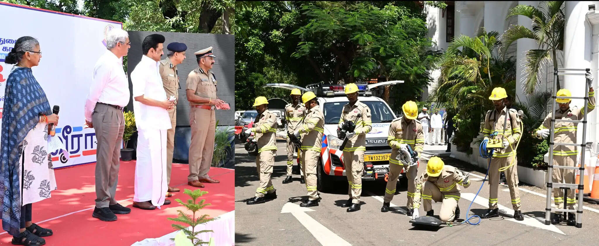 தமிழ்நாடு முதலமைச்சர் மு.க.ஸ்டாலின் இன்று (8.9.2023) தலைமைச் செயலகத்தில், சென்னை பெருநகர போக்குவரத்து காவல்துறை சார்பில் சாலை விபத்தில் சிக்கியவர்களை விபத்துக்குள்ளான வாகனங்களில் இருந்து மீட்டெடுக்கும் பணிக்கான “வீரா” (VEERA Vehicle for Extrication in Emergency Rescue and Accidents) அவசரகால மீட்பு மற்றும் விபத்துக்களிலிருந்து மீட்கும் வாகனத்தின் பயன்பாட்டினை கொடியசைத்து தொடங்கி வைத்து, காவல்துறையினரின் செயல்முறை விளக்கத்தை பார்வையிட்டார்.