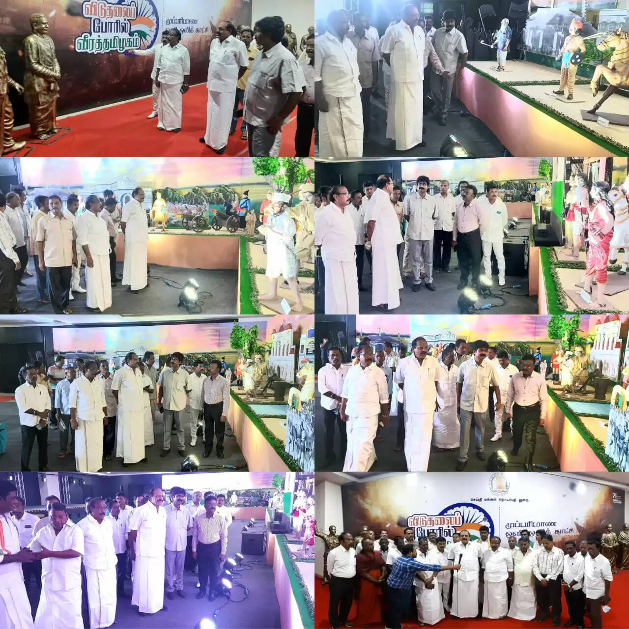விடுதலைப் போராட்டத்தில் ஈடுபட்ட பூலித்தேவன், ஒண்டிவீரன், வீரன் அழகுமுத்துக்கோன், வீரபாண்டிய கட்டபொம்மன், வீரமங்கை வேலுநாச்சியார், குயிலி, மருது சகோதரர்கள், தீரன் சின்னமலை போன்ற வீர மறவர்களின் போராட்டங்களும், கப்பலோட்டிய தமிழர் வ.உ.சிதம்பரனார், சுப்பிரமணிய சிவா, மகாகவி பாரதியார், பெரியார், மூதறிஞர் இராஜாஜி, திருப்பூர் குமரன், காமராஜர், கண்ணியத் தென்றல் காயிதே மில்லத், ஜே.சி. குமரப்பா, பசும்பொன் முத்துராமலிங்கம், கடலூர் அஞ்சலை அம்மாள் போன்ற எண்ணற்ற தலைவர்களின் தியாகங்களும் காட்சிப்படுத்தப்பட்டுள்ளன. இந்திய விடுதலைக்கு வித்திட்ட முத்தாய்ப்பான மூன்று போராட்டங்களான ஒத்துழையாமை இயக்கம், சட்ட மறுப்பு இயக்கம், வெள்ளையனே வெளியேறு இயக்கம் ஆகிய நிகழ்வுகளும் இக்கண்காட்சியில் இடம் பெற்றுள்ளன.இக்கண்காட்சி காலை 9.00 மணி முதல் இரவு 8.00 மணி வரை காட்சிப்படுத்தப்பட்டு வருகிறது. இக்கண்காட்சிக்கு நுழைவுக் கட்டணம் ஏதுமில்லை. அனுமதி முற்றிலும் இலவசம். பொதுமக்கள், இளைஞர்கள், பள்ளி, கல்லூரி மாணவர்கள் ஆகியோர் இந்த முப்பரிமாண ஒளி-ஒலிக் காட்சியினைப் பார்வையிட்டுப் பயன்பெறுமாறு கேட்டுக்கொள்ளப்படுகிறார்கள்" என்று தெரிவிக்கப்பட்டுள்ளது.