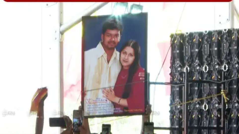 இந்நிலையில் தஞ்சையில் நடைபெறும் தவெக நிர்வாகிகள் சந்திப்புக்கூட்டத்தில் விஜய்- சங்கீதா புகைப்படத்துடன் நின்ற ரசிகர்களின் செயல் இணையத்தில் வைரலாகிவருகிறது. விஜய் மீது சங்கீதா விவாகரத்து வழக்கு தொடர்ந்திருந்த நிலையில், ரசிகர்களின் இந்த செயல் இணையத்தில் பேசுபொருளாகியுள்ளது.
