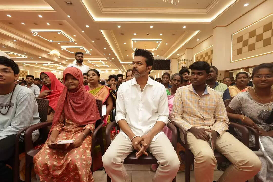 நடிகரும், தமிழக வெற்றிக்கழகத்தின் தலைவருமான விஜய் கல்வி விருது விழாவில் கலந்துகொண்ட நிலையில் நெல்லை மாவட்டத்தில் சாதிய கொடுமையால் பாதிக்கப்பட்ட மாணவர் சின்னதுரை அருகே அமர்ந்து புகைப்படம் எடுத்துக்கொண்டார்.பொதுத்தேர்வில் முதல் மூன்று இடங்களைப் பிடித்த மாணவர்களுக்கு வைர மோதிரம், வைர கம்மல் ஆகியவை வழங்கிய நடிகர் விஜய், அவர்களை குடும்பமாக வரவழைத்து புகைப்படமும் எடுத்துக் கொண்டார்.