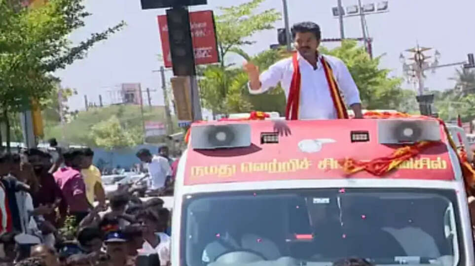 விஜய் திருச்சி விமான நிலையத்திலிருந்து பிரச்சார வாகனத்தில் மனு தாக்கல் செய்ய வந்தார் விஜய்.திருச்சி விமான நிலையத்திலிருந்து வேட்பு மனு தாக்கல் செய்யும் இடம் வரை விஜய் ரோடு ஷோ தொண்டர்கள் வீசி எரித்த கட்சி தொண்டை துண்டுகளை வாங்கி தனது தோளில் அணிந்தபடி விஜய் தொண்டர்களை நோக்கி கையைசைத்தும் வாகனத்தில் நின்றபடி வந்து கொண்டிருக்கிறார்.