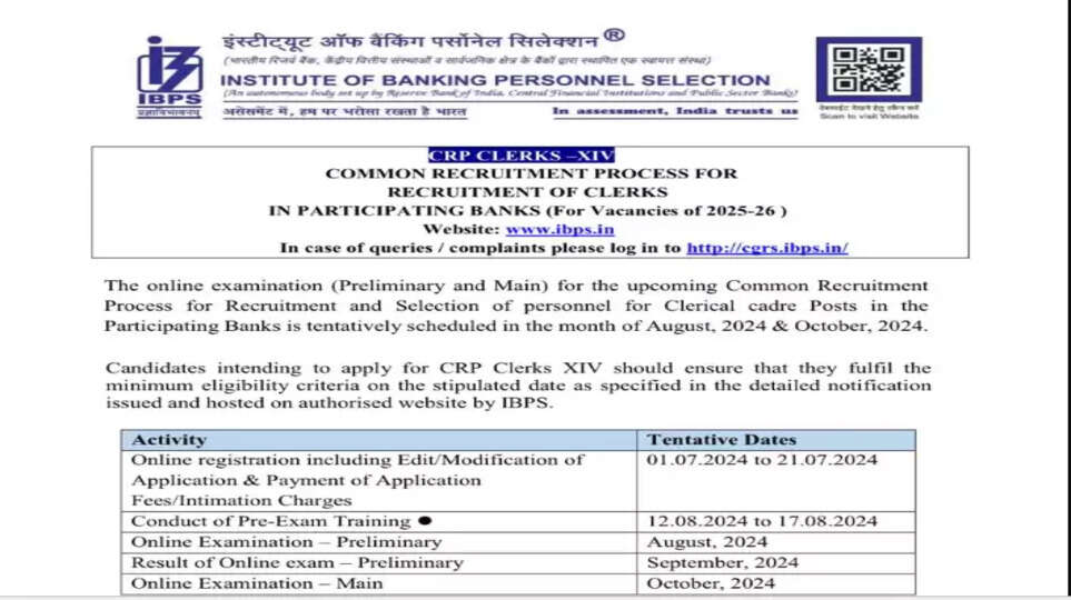 பொதுத்துறை வங்கிகளில் எழுத்தர் (Clerk) பணிக்காக இன்று முதல் விண்ணப்பிக்கலாம்.
